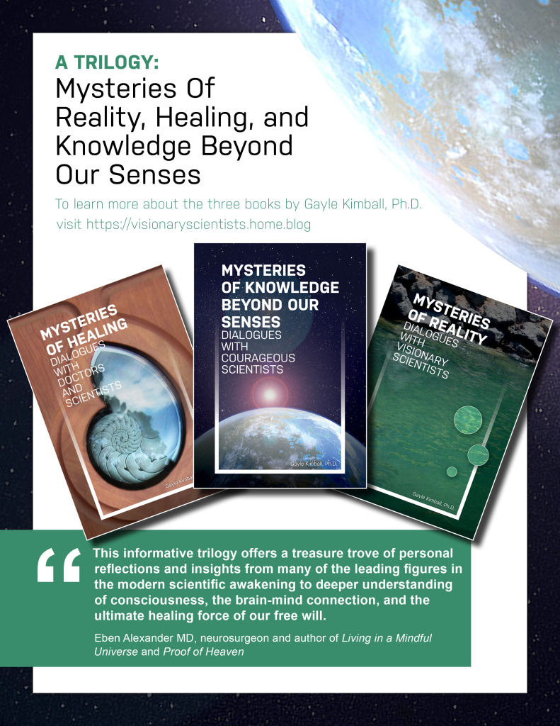 | July 18 The Science of Psi and Intention Gayle interviewed 65 visionary scientists for a book trilogy, wrote “Essential Energy Tools: How to Develop Your Clairvoyant and Healing Abilities,” & “Calm: How to Thrive in Challenging Times,” etc. |